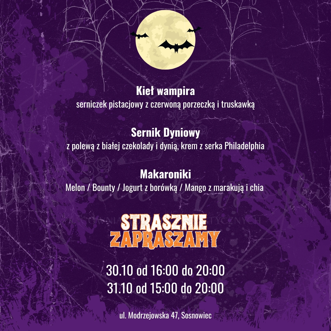 Wszystko to w naszej mrocznej, halloweenowej atmosferze! Zapraszamy – będzie strasznie pysznie! ![]()