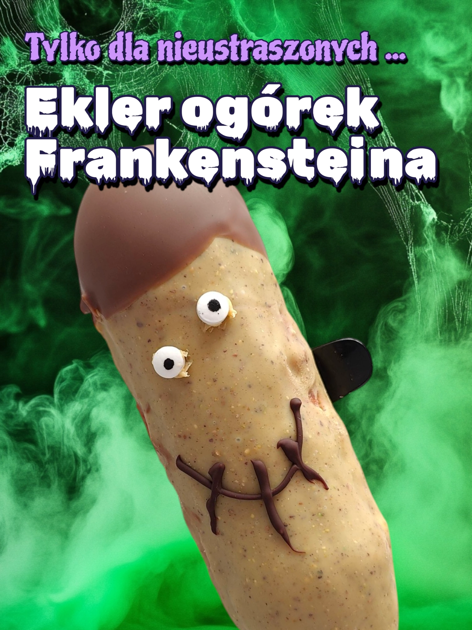 🫛 Eklery Ogórki Frankensteina — pistacjowy cremeux, chrupka i polewa pistacjowa.