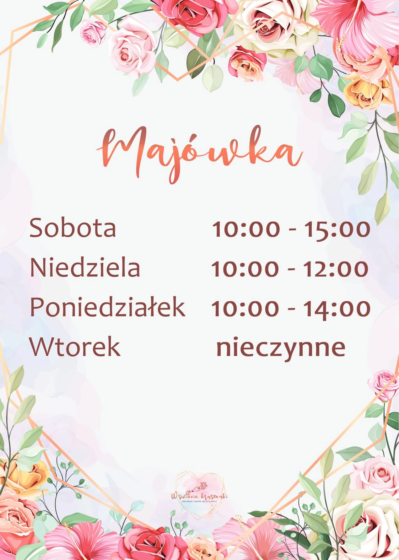 Jesteśmy otwarci jeszcze jutro (01.05), ale w skróconych godzinkach oraz wyjątkowo w poniedziałek (02.05).