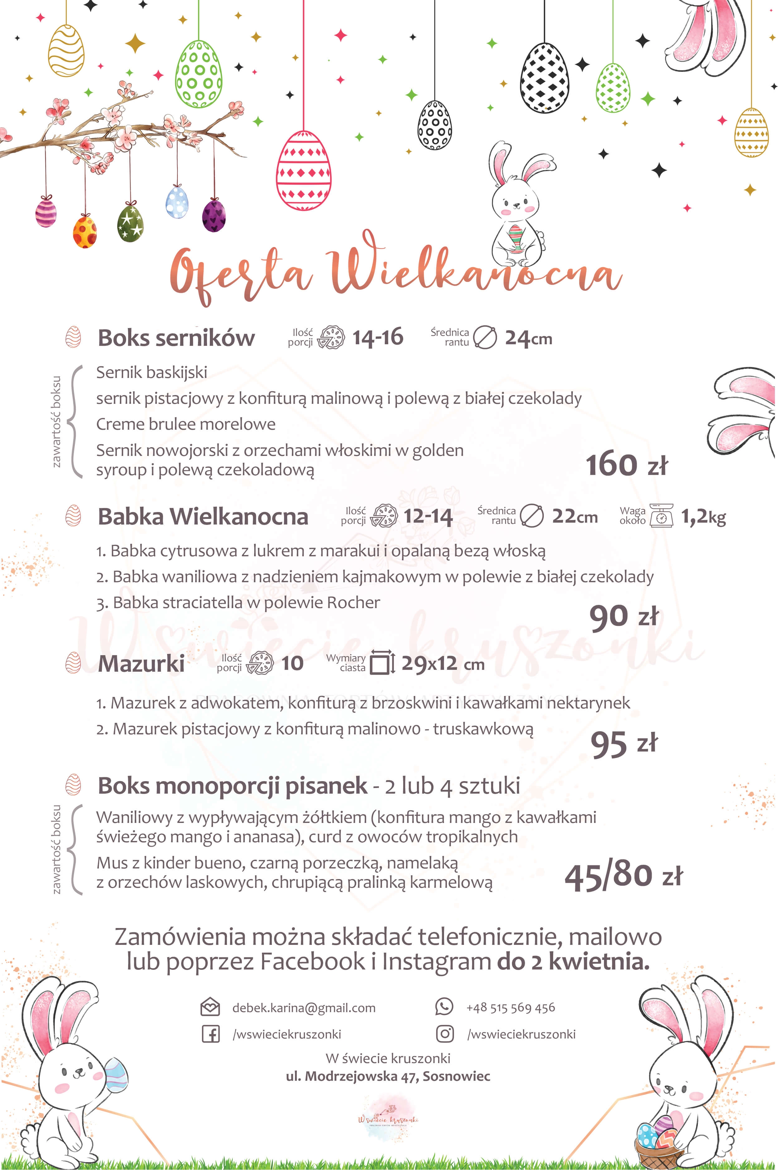 Zamówienia możecie składać od dzisiaj do 2 kwietnia poprzez Facebook, Instagram, mailowo bądź telefonicznie