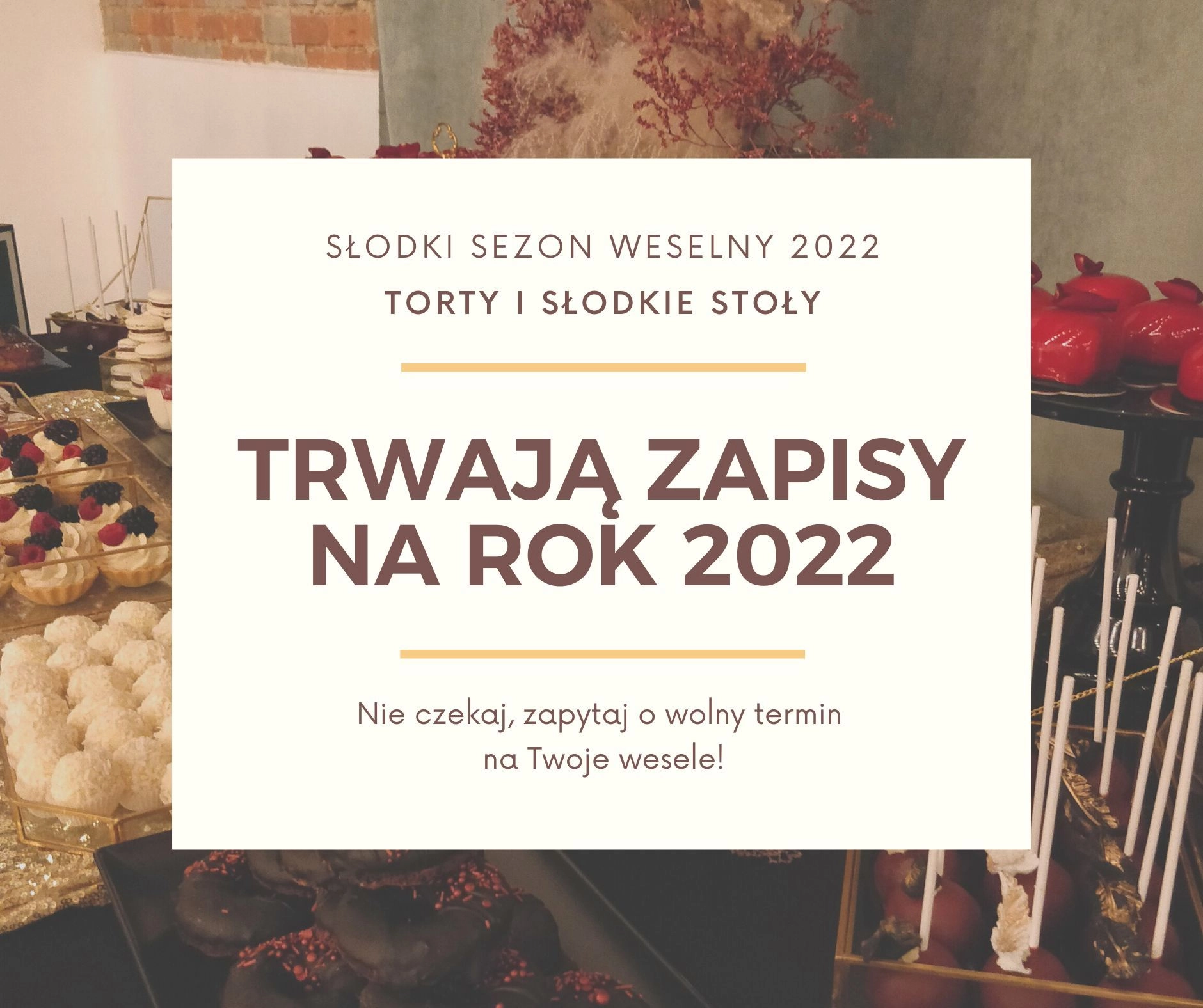 Cały czas zbieramy zapisy na słodkie realizacje weselne. Mamy jeszcze kilka wolnych terminów w tych najbardziej oblaganych miesiącach, czyli czerwiec-sierpień! Nie czekajcie na ostatnią chwilę i zadbajcie wcześniej o słodkości na weselu, aby mieć pewność terminu.