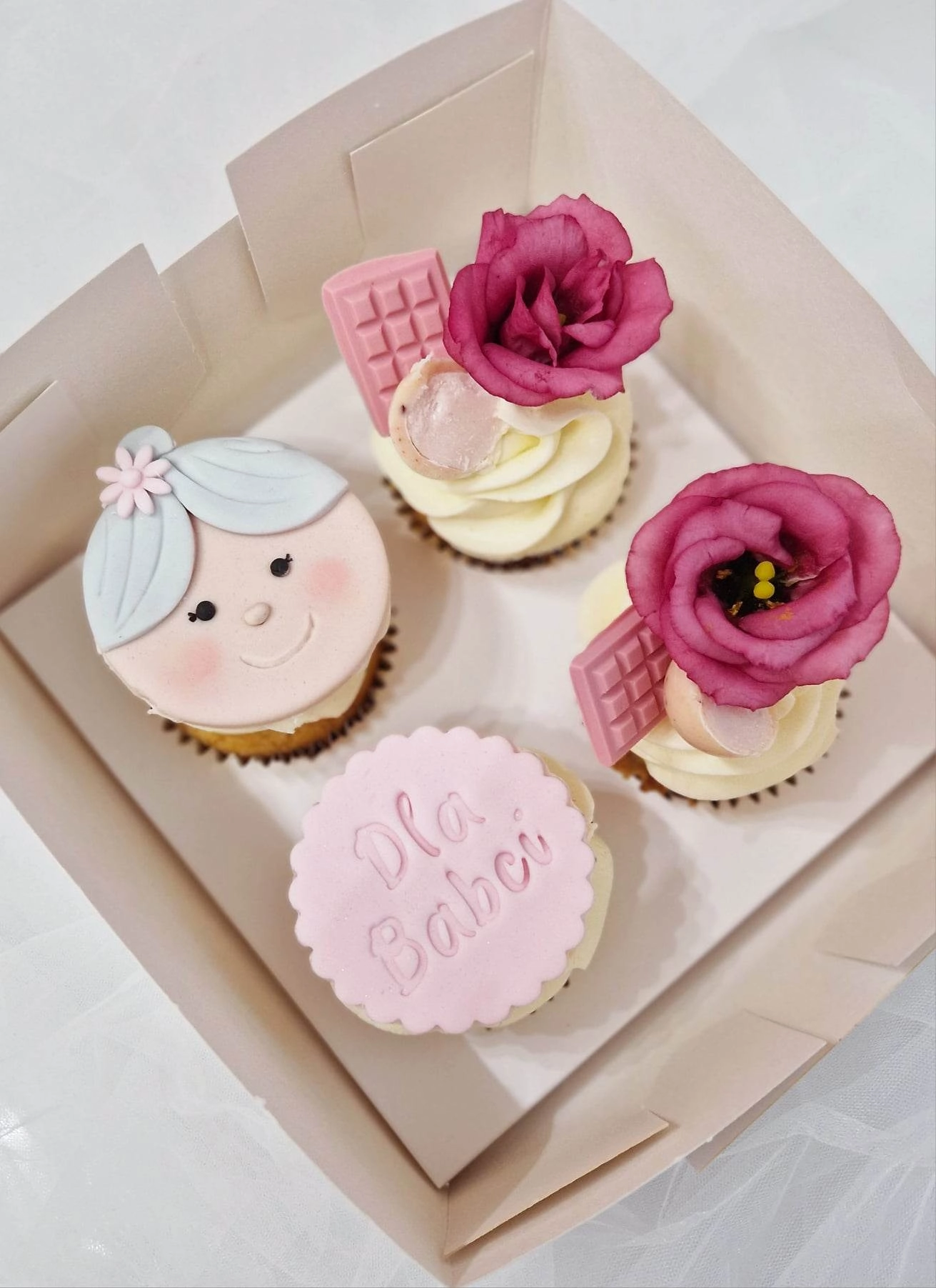 4x babeczki dla babci (waniliowe z konfiturą różaną z marakują i kremem z białej czekolady) ![]()