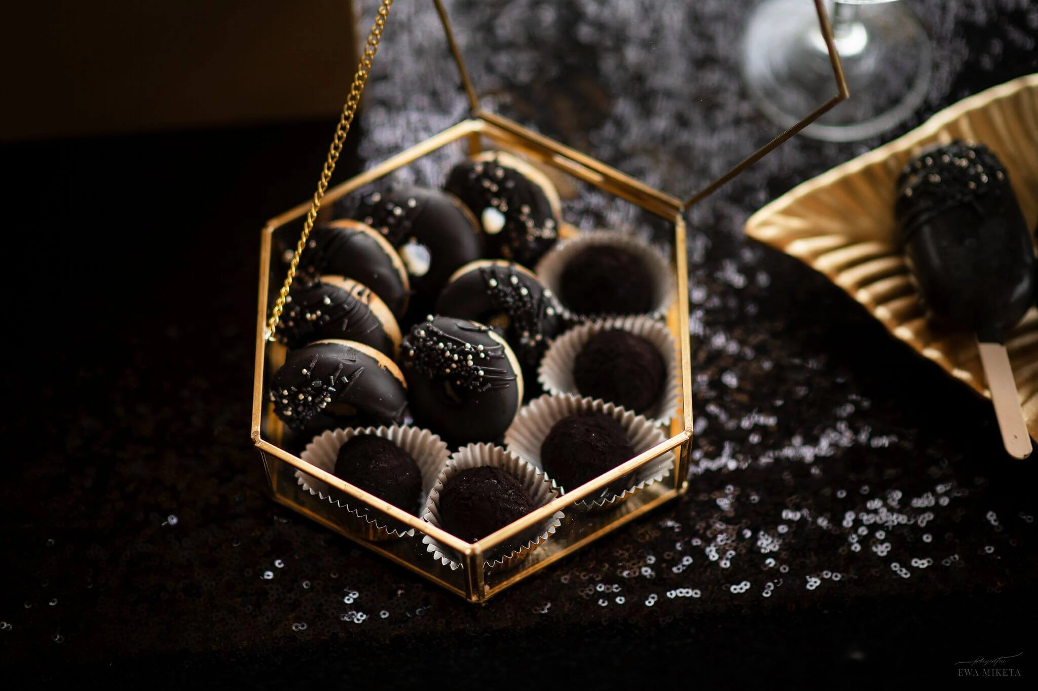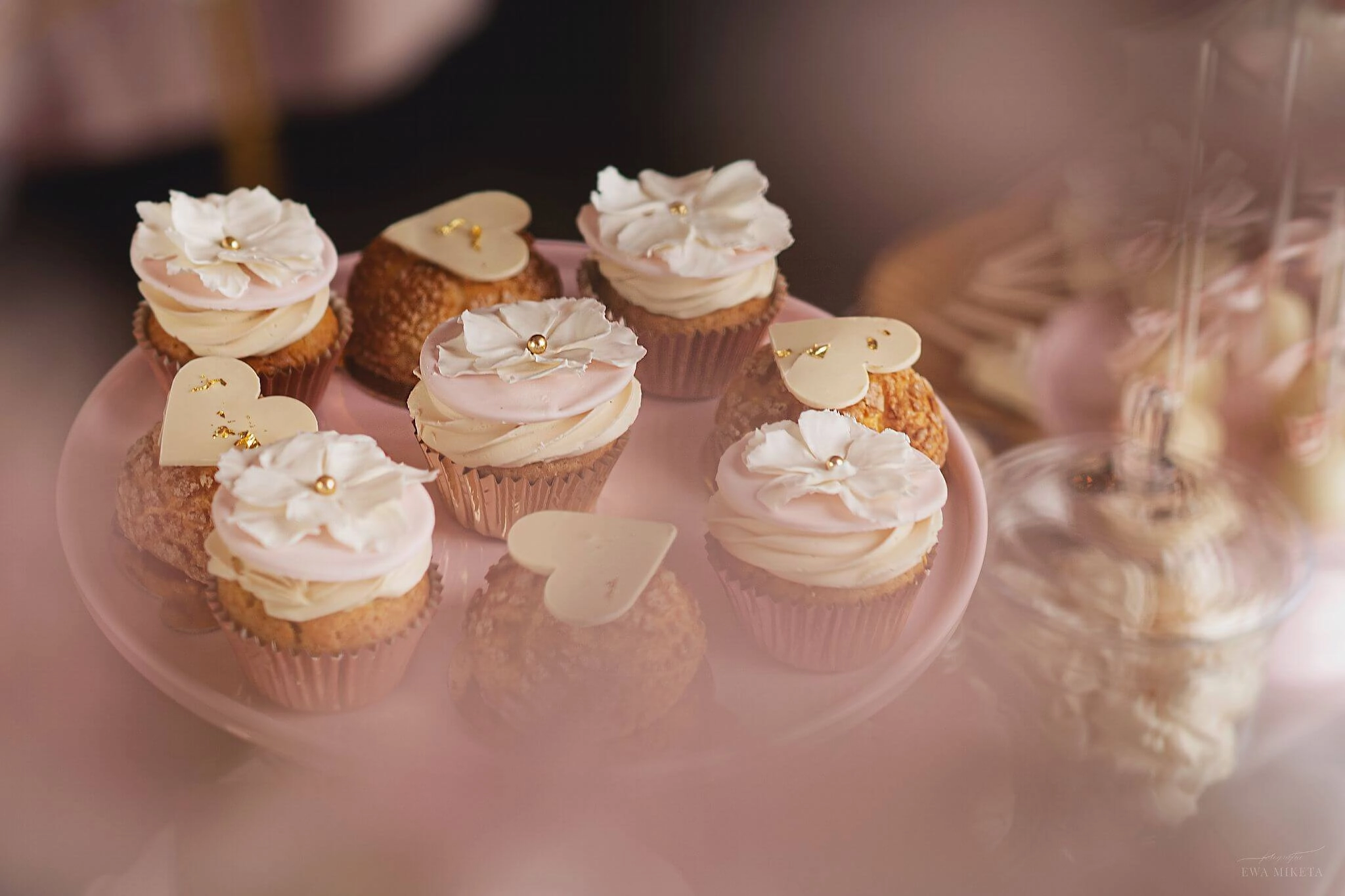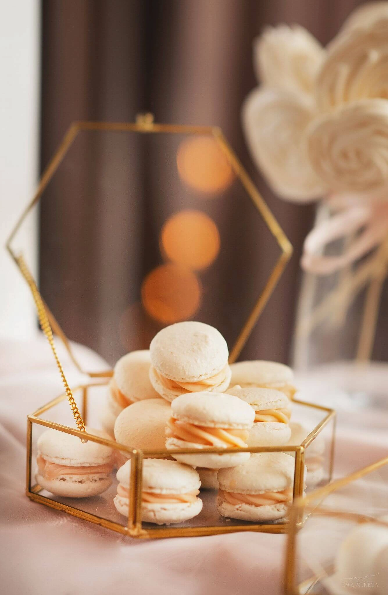 Dzięki współpracy z dekoratorami możemy zadbać, by na słodkim stole pojawiły się kompozycje kwiatowe, świeczniki, obrusy czy stojaki, które idealnie wpiszą się w wybraną estetykę. Tworzymy całość tak, by wyglądała jak naturalna część dekoracji – nie „doklejona atrakcja”.