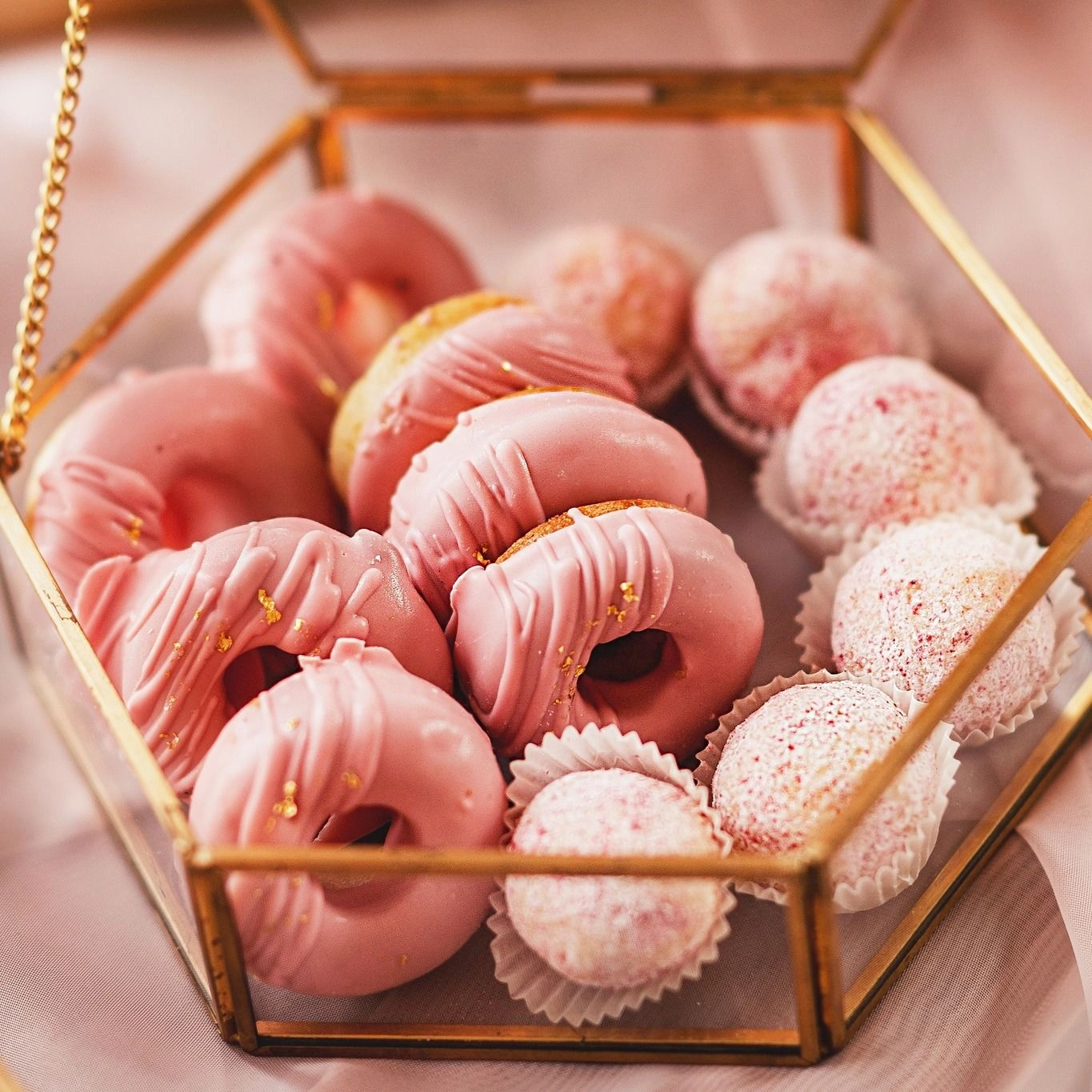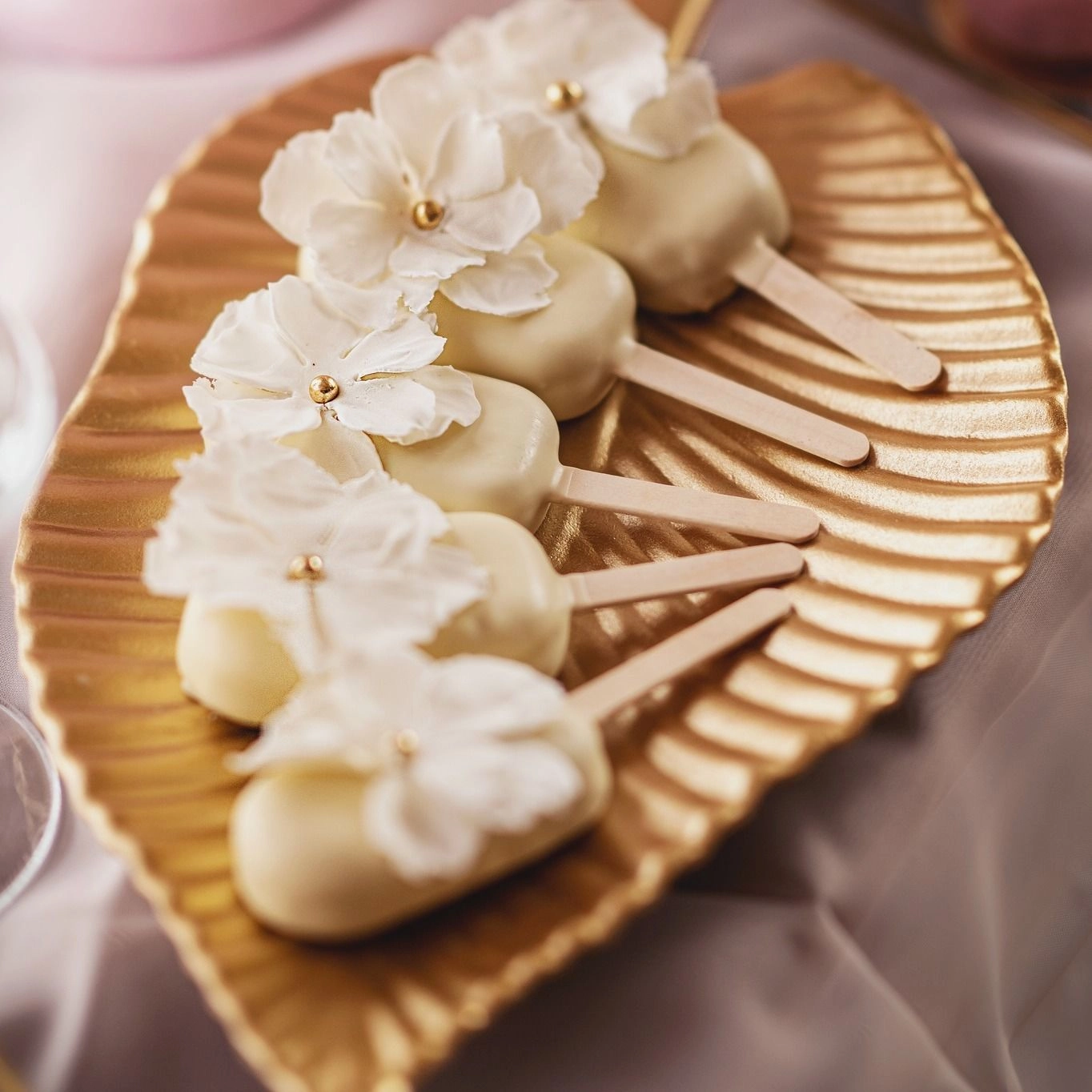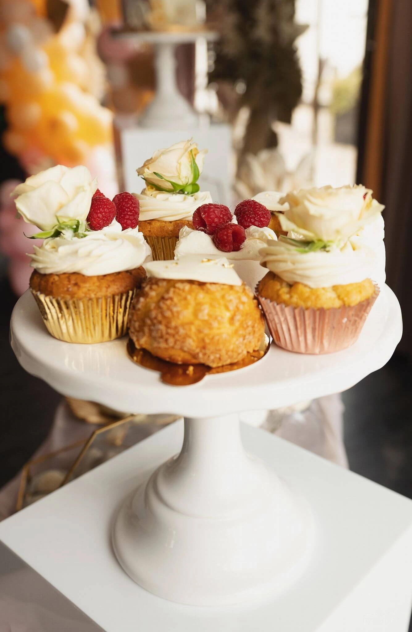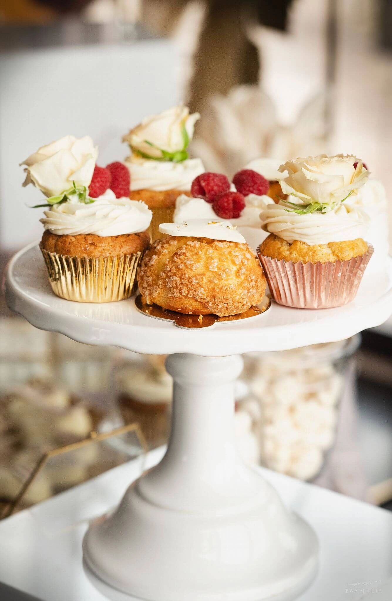 Dzięki współpracy z dekoratorami możemy zadbać, by na słodkim stole pojawiły się kompozycje kwiatowe, świeczniki, obrusy czy stojaki, które idealnie wpiszą się w wybraną estetykę. Tworzymy całość tak, by wyglądała jak naturalna część dekoracji – nie „doklejona atrakcja”.