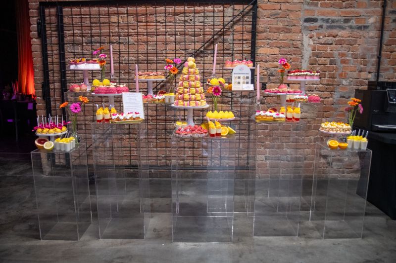 Wszystko zostało przygotowane w żywej, energetycznej kolorystyce – dominowały odcienie różu, pomarańczy i żółci, które doskonale komponowały się z industrialnym tłem restauracji. 🌈