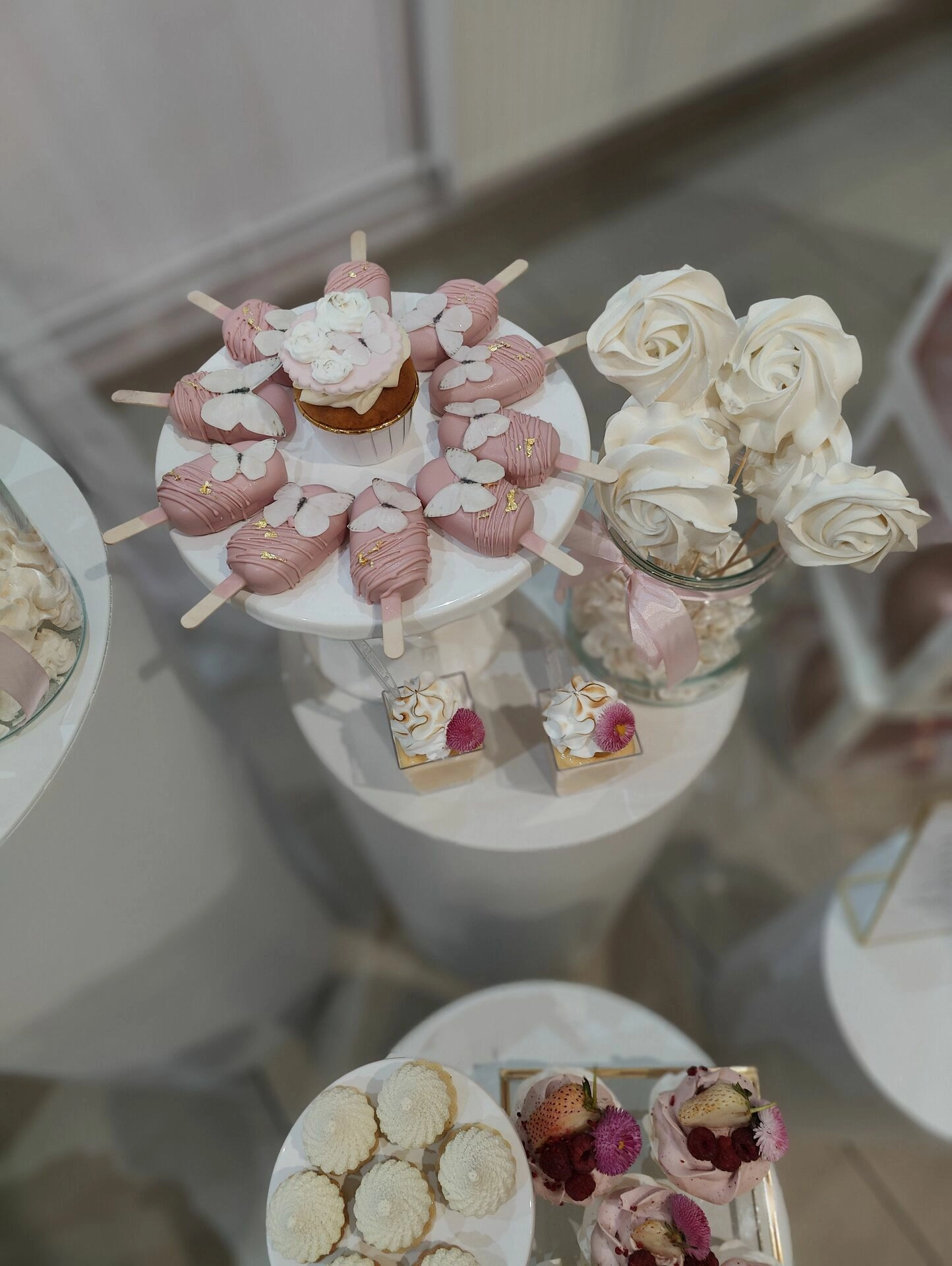 Ten wyjątkowy słodki stół przygotowaliśmy z okazji pierwszych urodzin Róży – a cała realizacja była niczym z bajki! Delikatna, pastelowa kolorystyka, dziewczęce dekoracje i urocze detale sprawiły, że każdy gość – od najmłodszych po dorosłych – poczuł się jak w prawdziwej krainie słodkości.