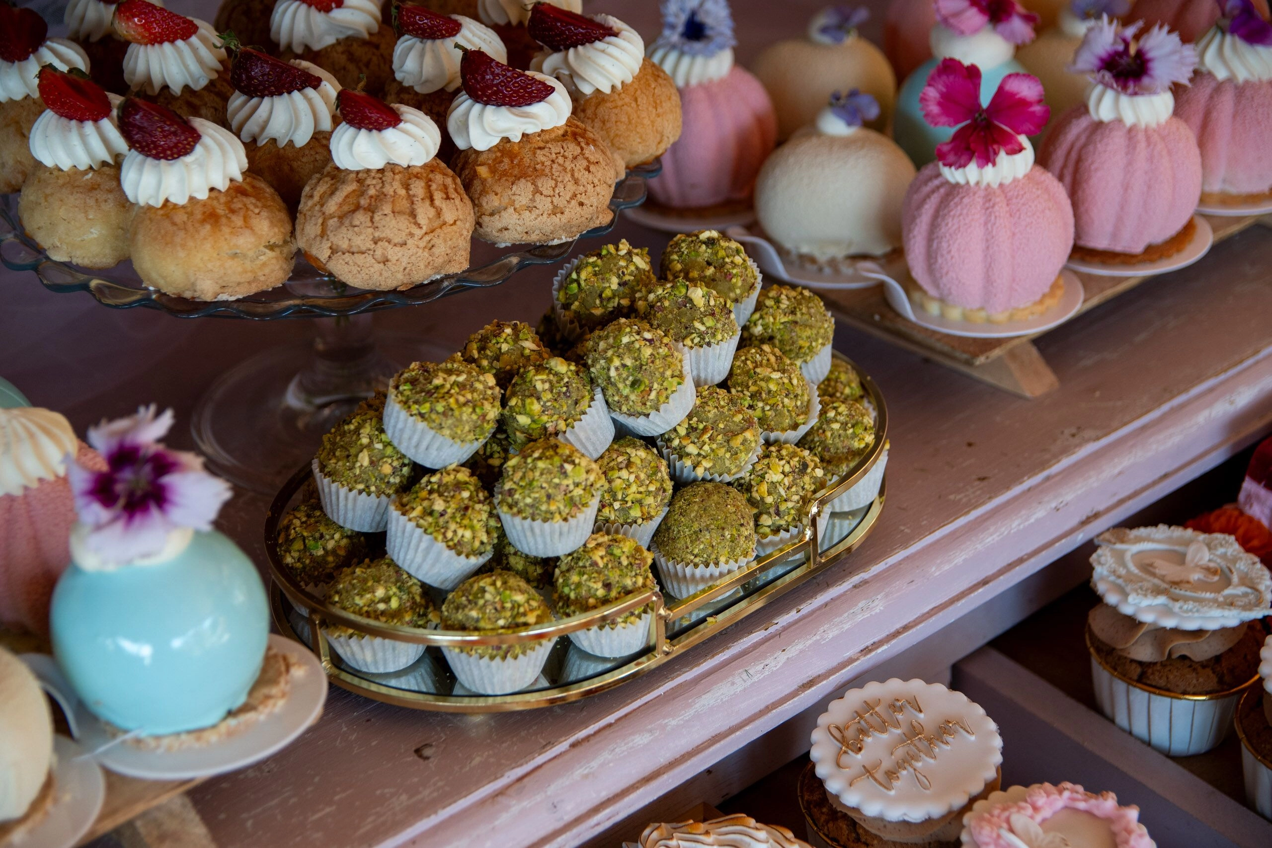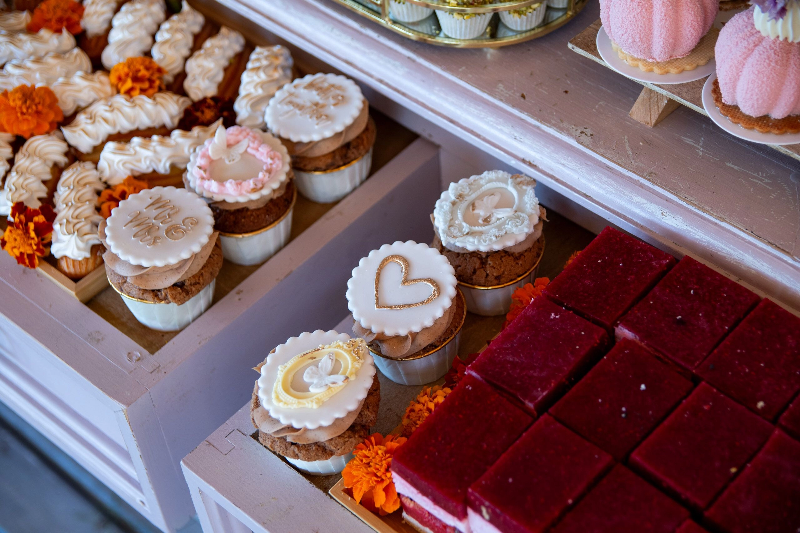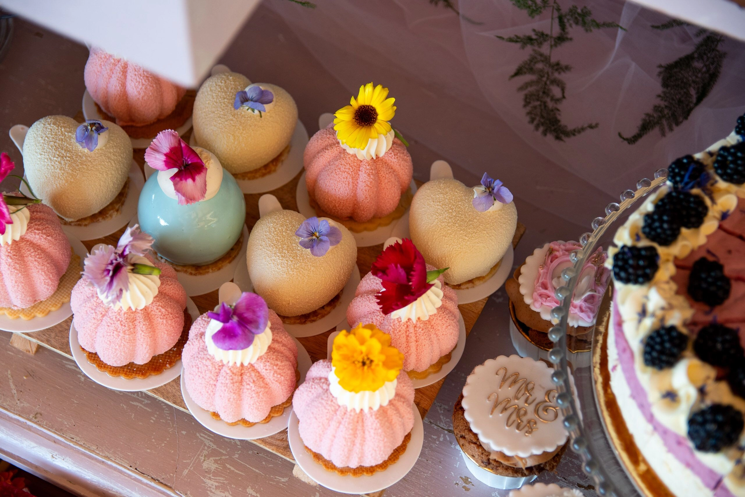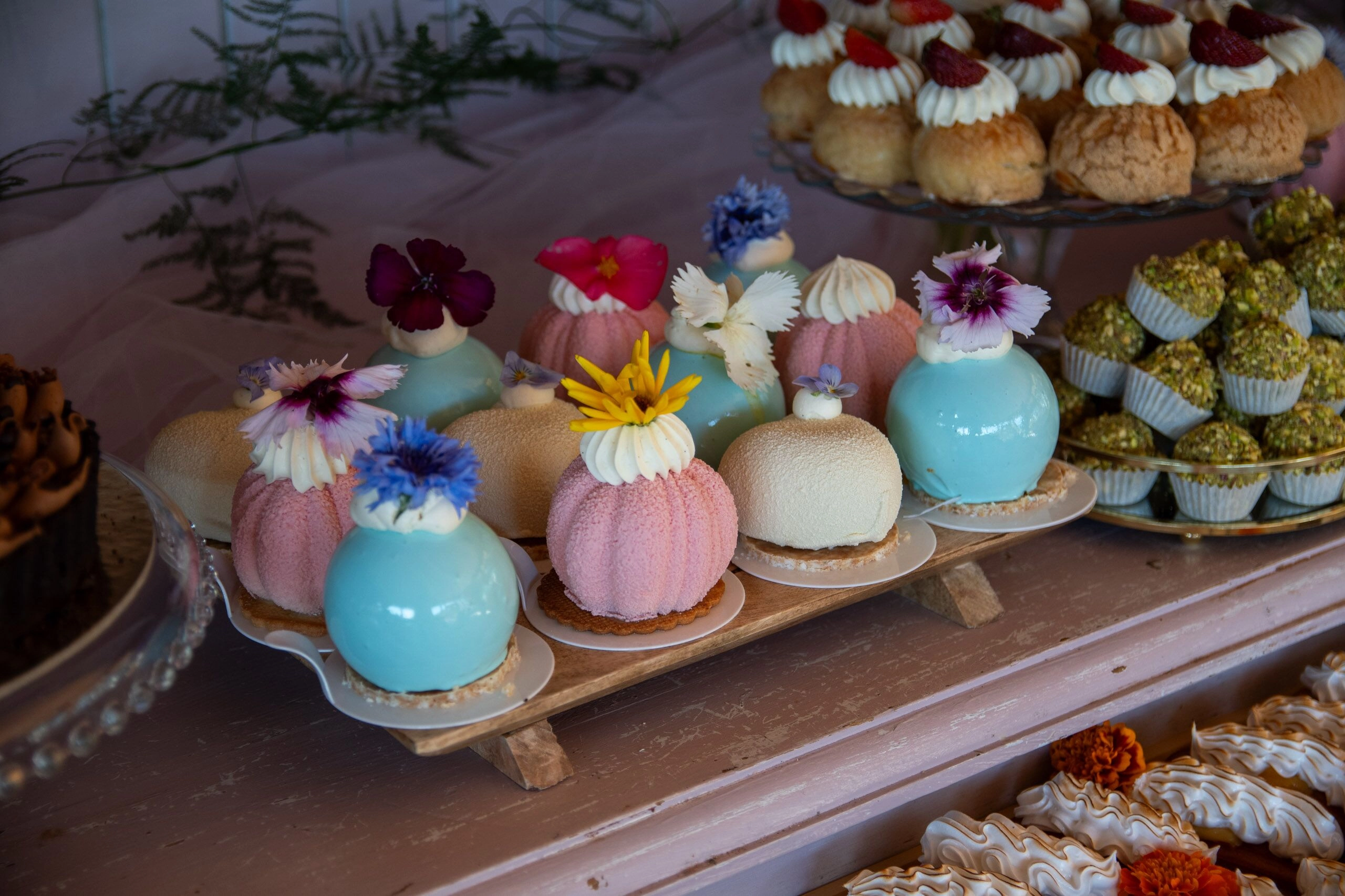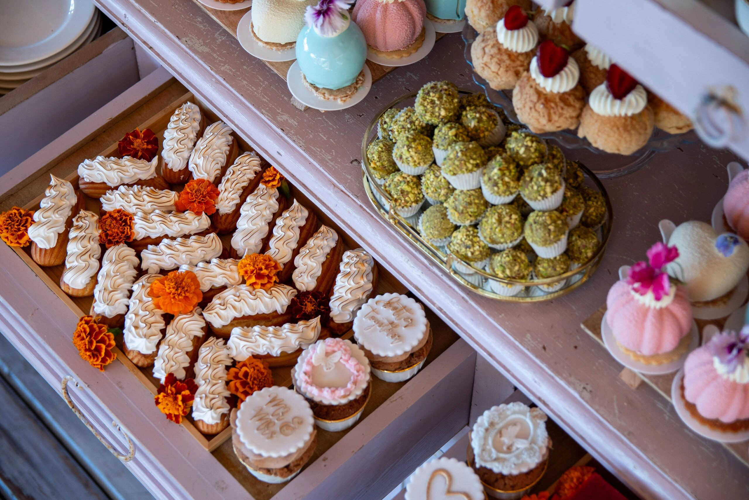 - Babeczki: Z różną dekoracją i w różnych kolorach, zdobione kremami i owocami.