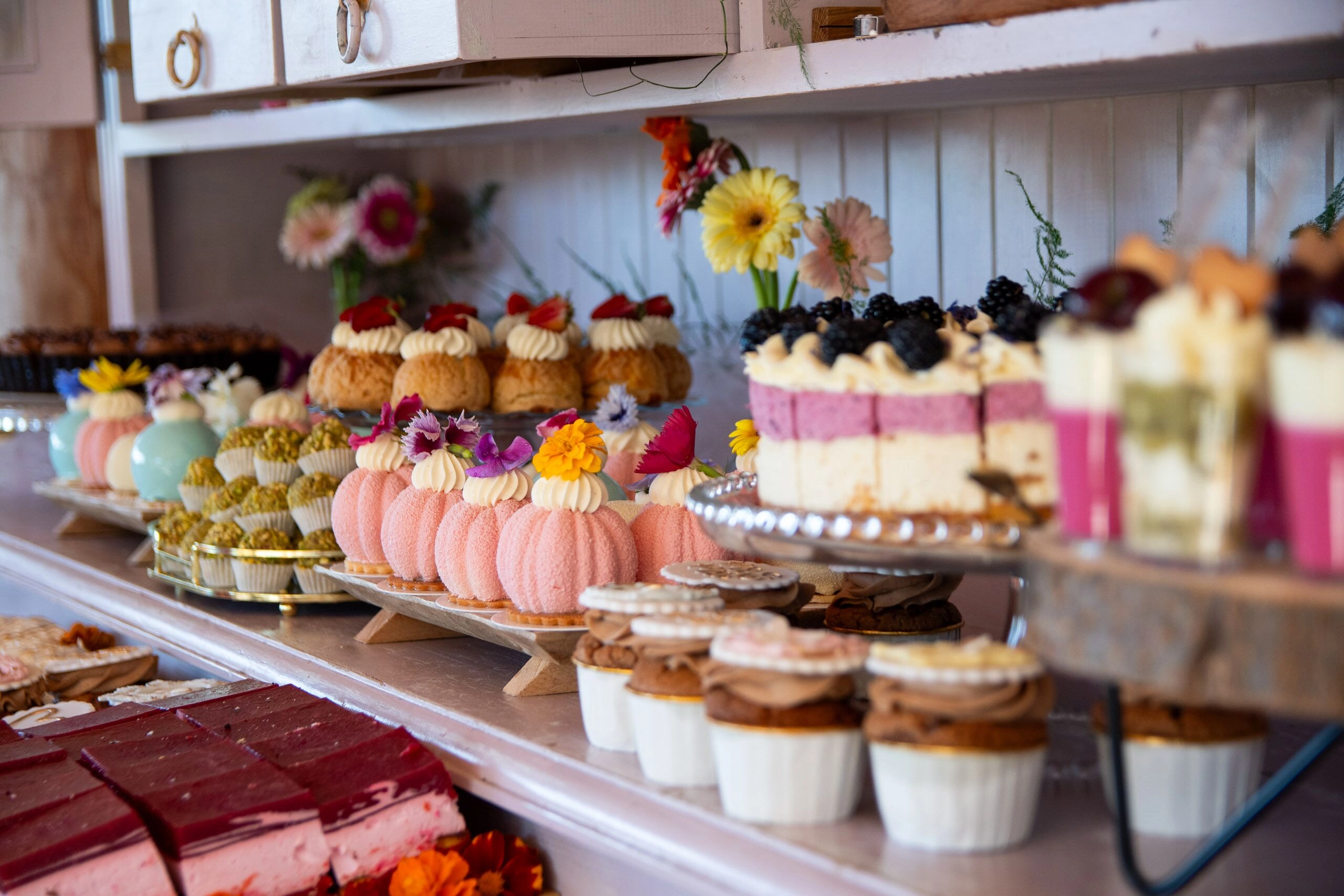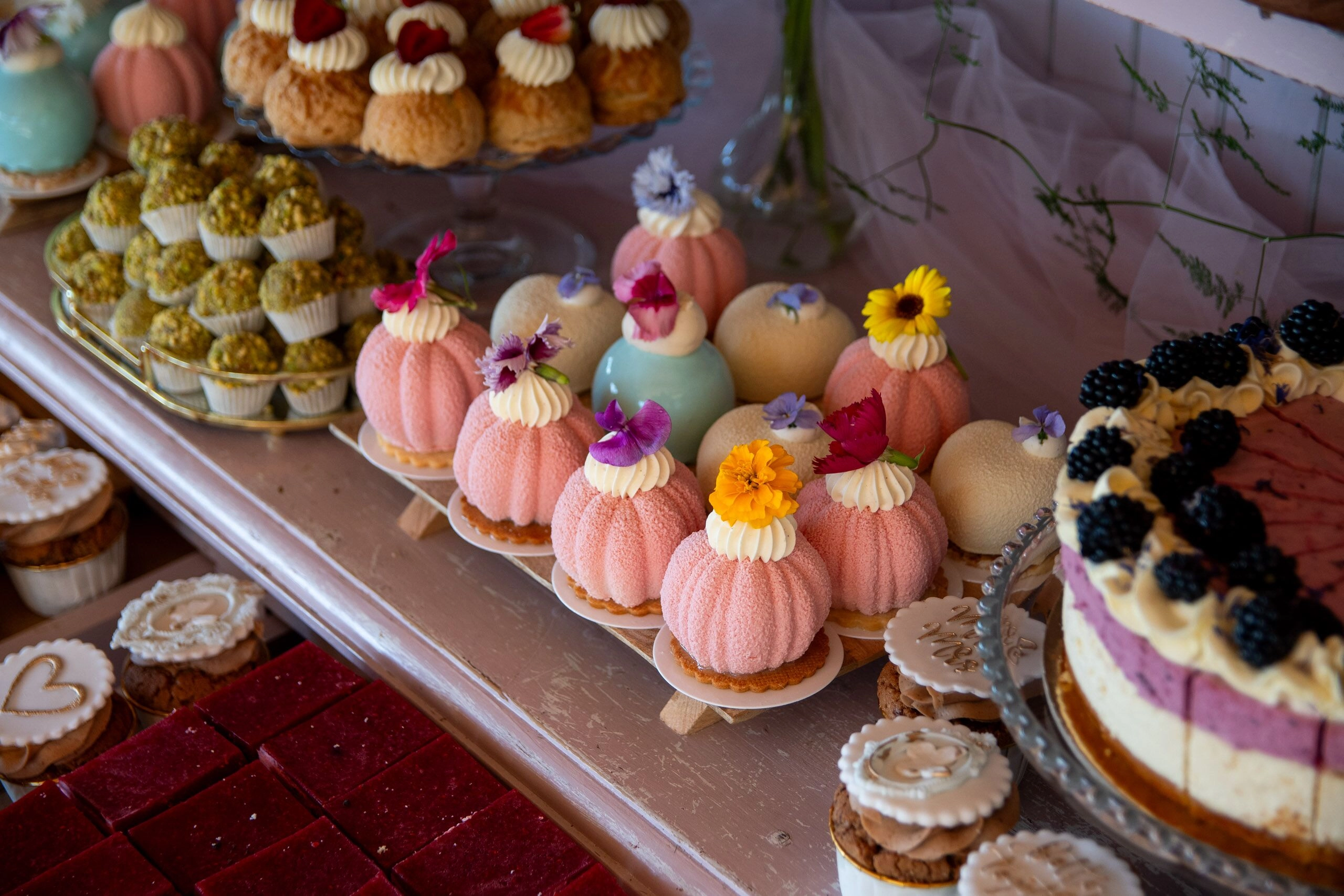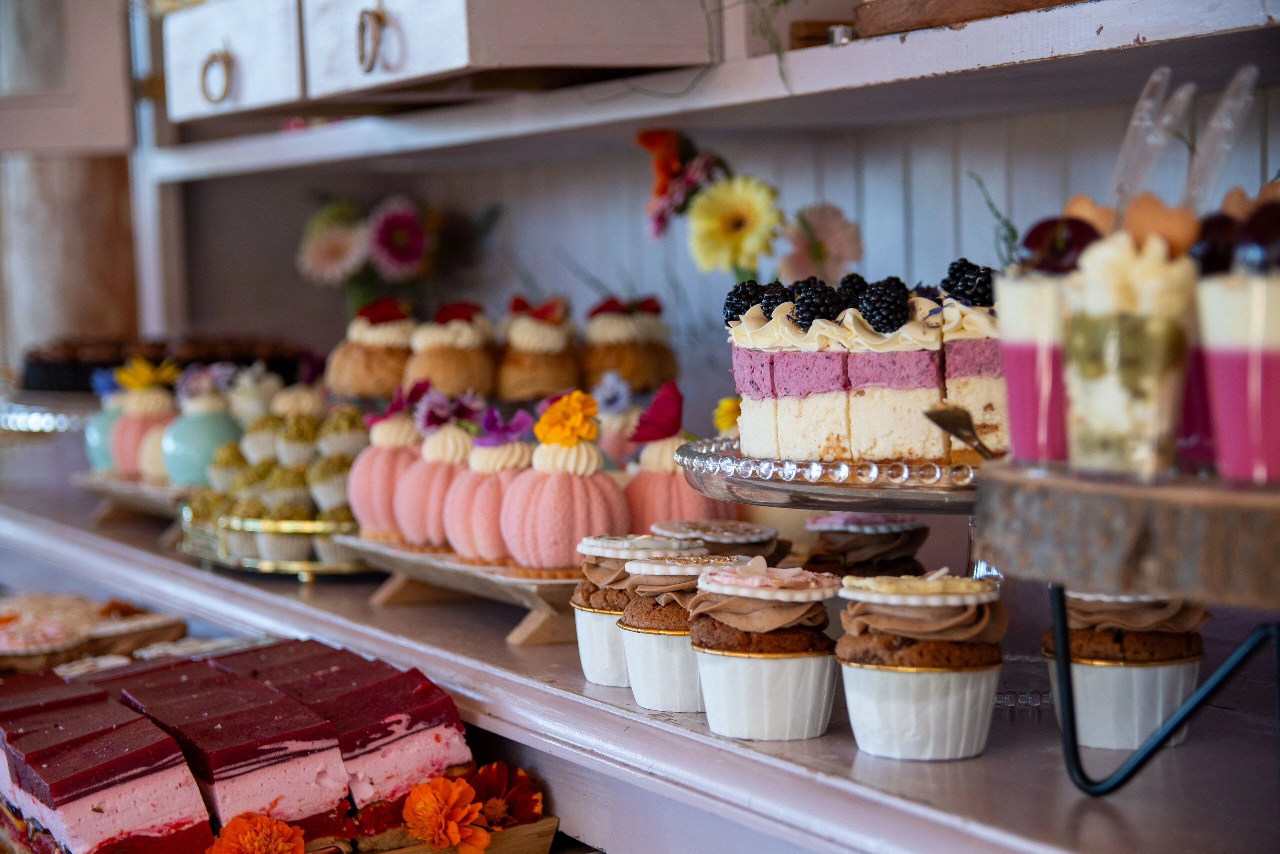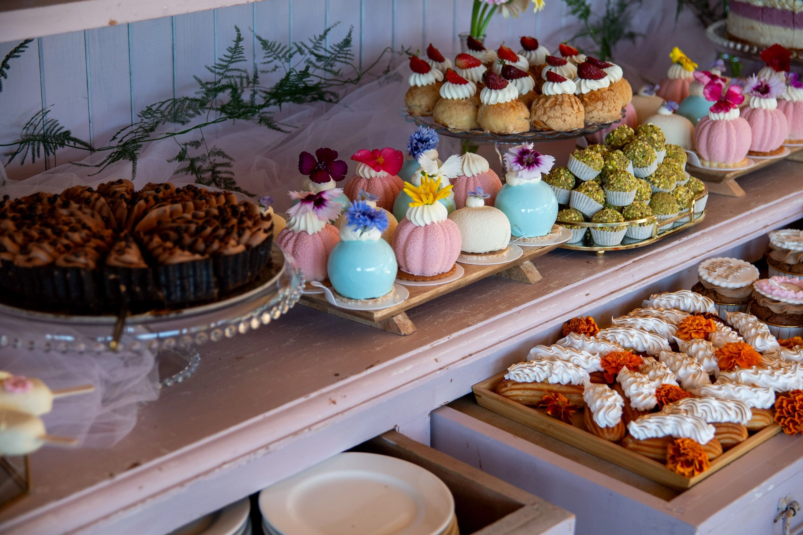 - Babeczki: Z różną dekoracją i w różnych kolorach, zdobione kremami i owocami.