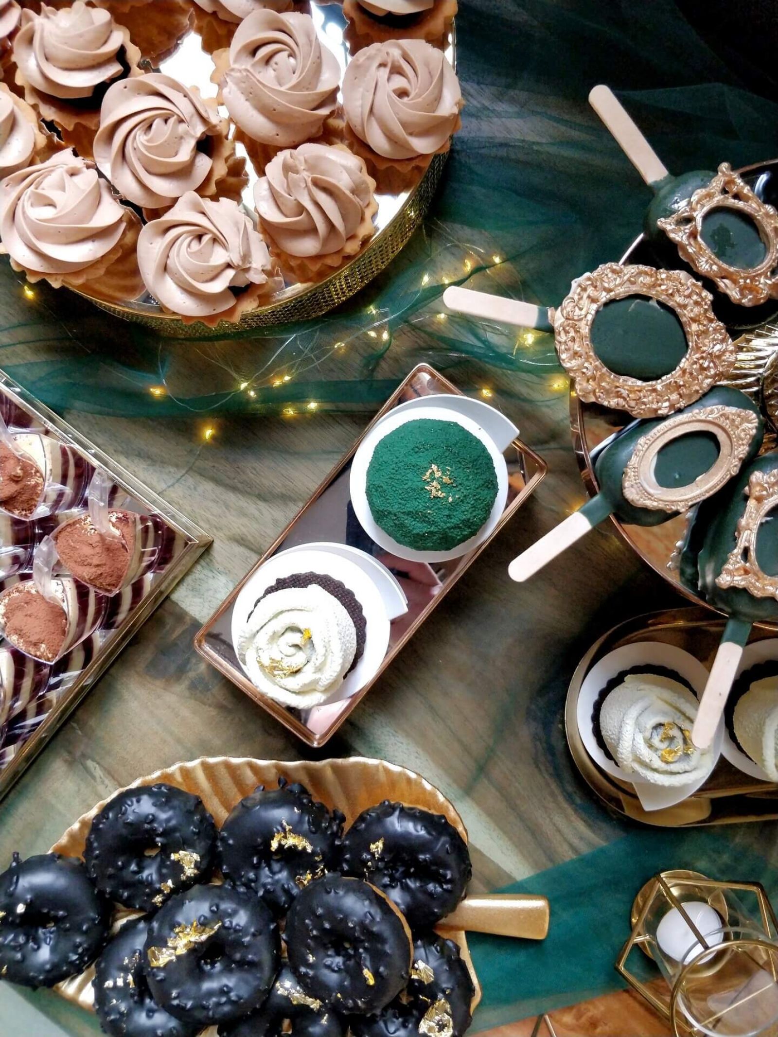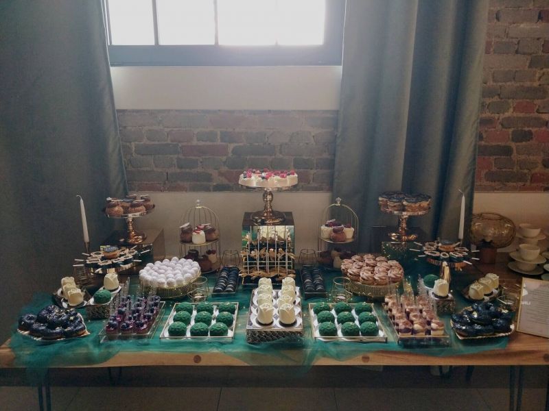 Weselny słodki stół w odcieniach zieleni