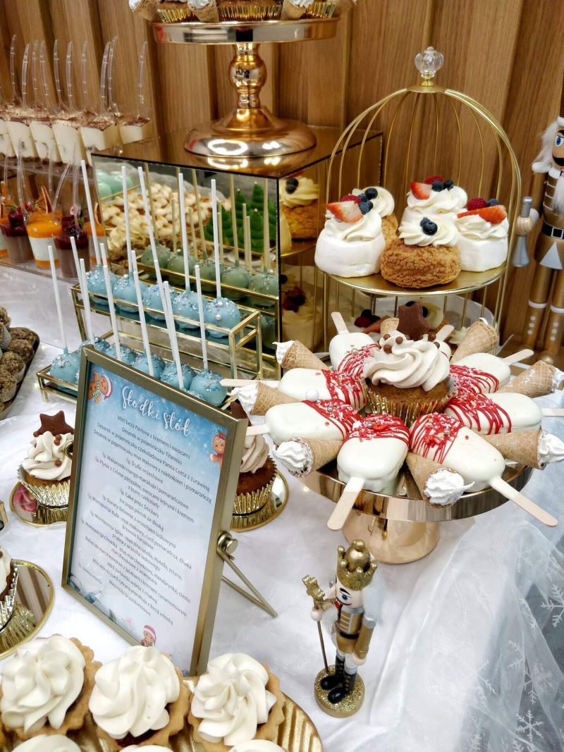 Wigilia firmowa ze słodką oprawą? Czemu nie! Poza tradycyjnymi i klasycznymi potrawami jak barszczyk, uszka czy krokiety, może stanąć słodki stół w świątecznej odsłonie, zarówno wizualnej i smakowej!