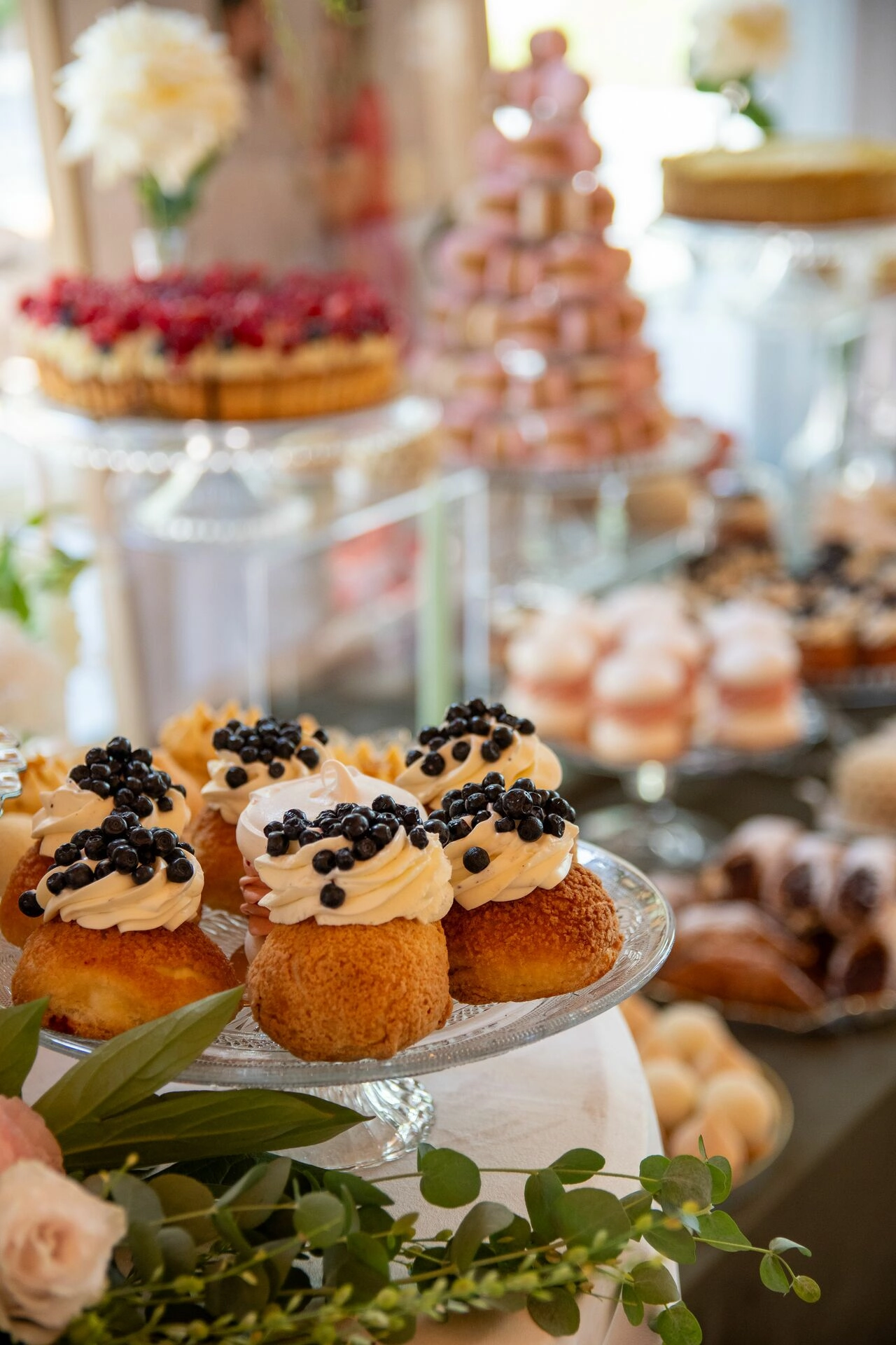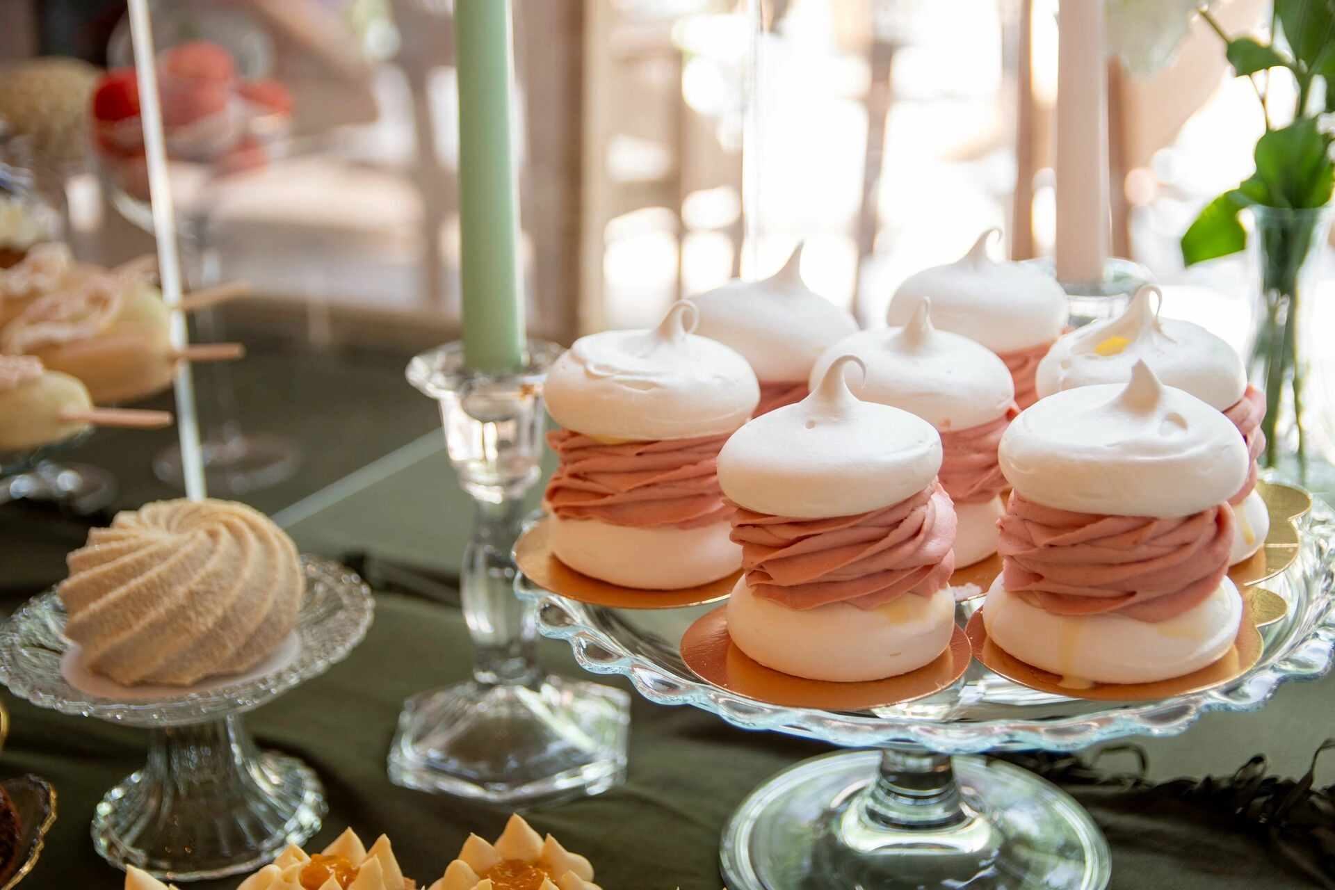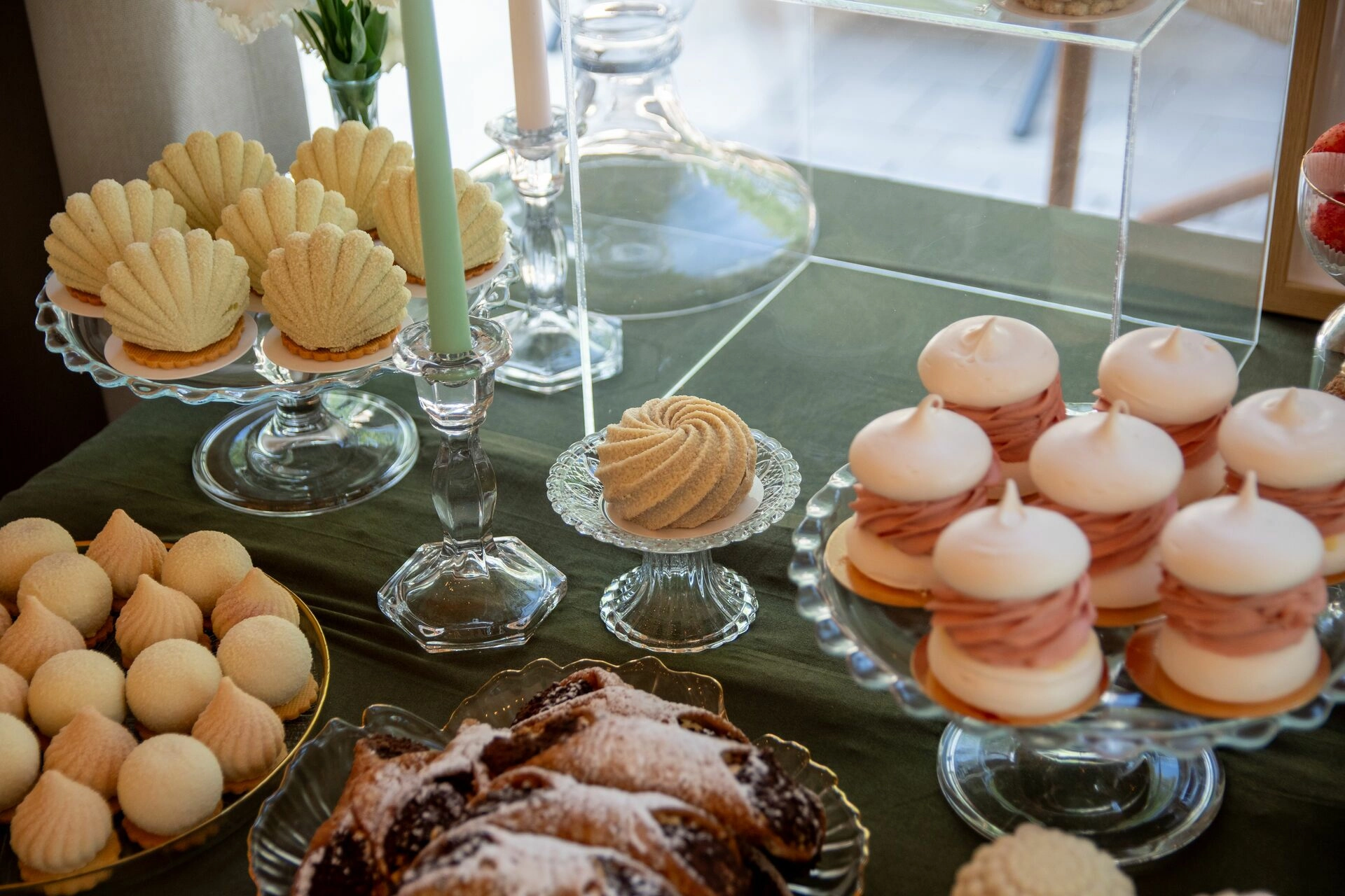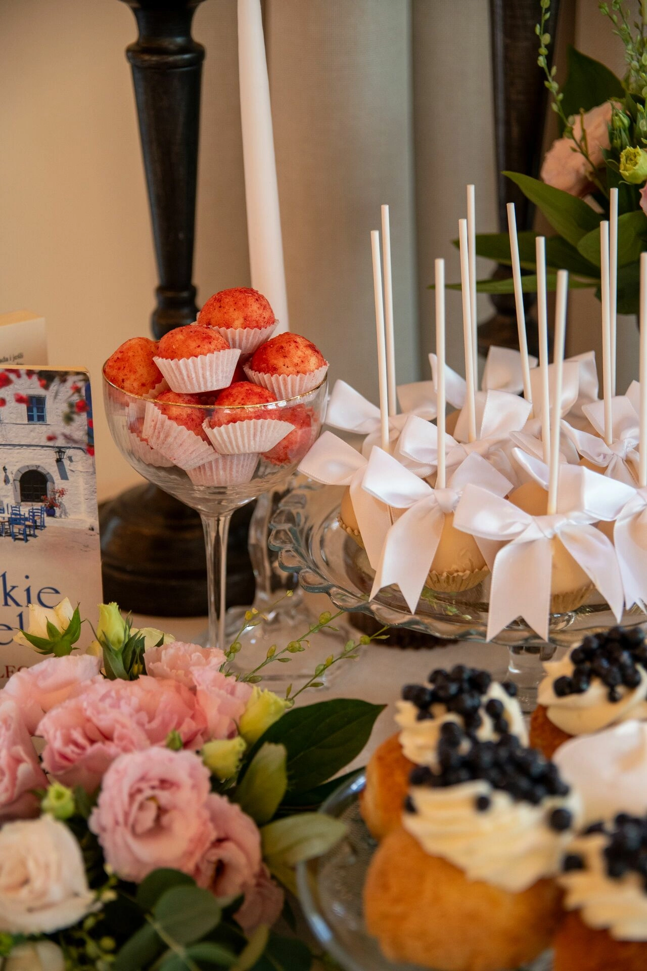 Słodki stół został zaaranżowany z dbałością o detale – kryształowe patery, świeże kwiaty, świece, tkaniny w delikatnych odcieniach i subtelna oprawa zdjęciowa Pary Młodej. To nie tylko candy bar – to scena z filmu. Kadry, które pachną miłością, smakiem i zachwytem.