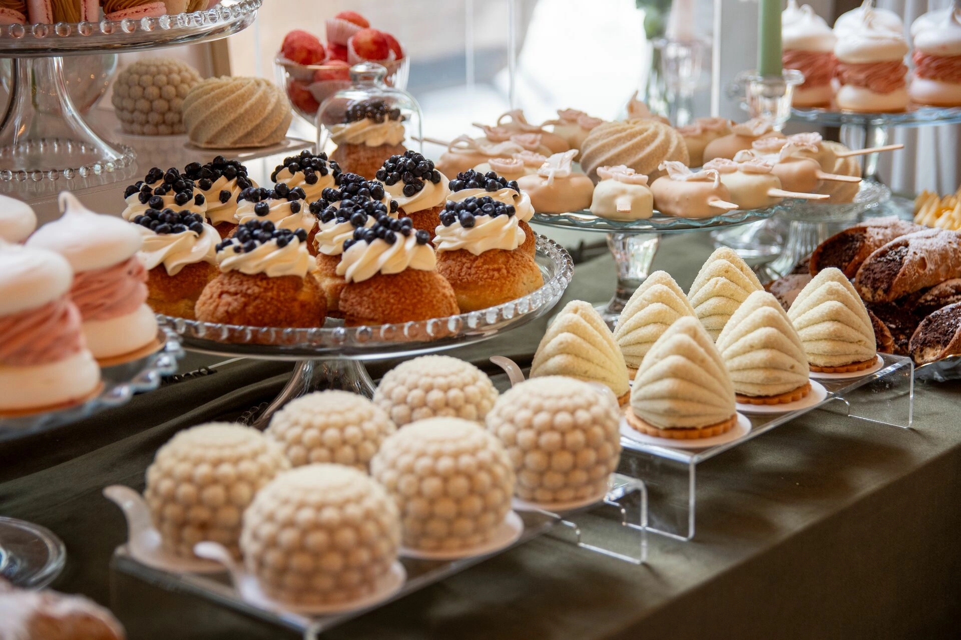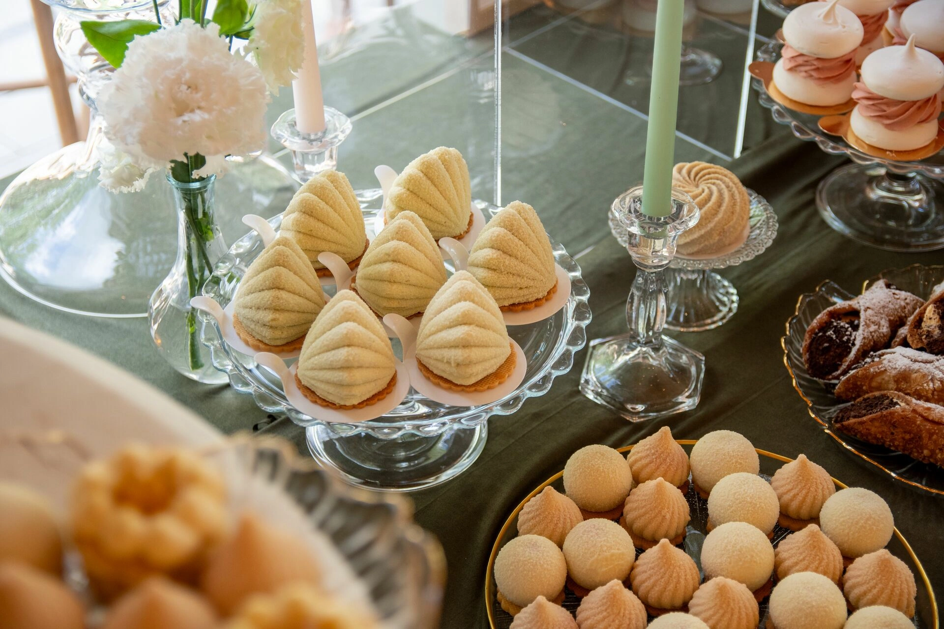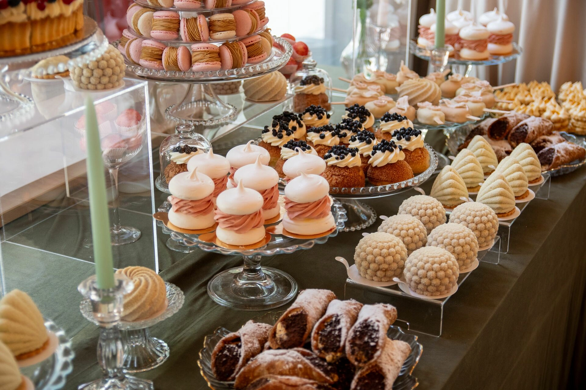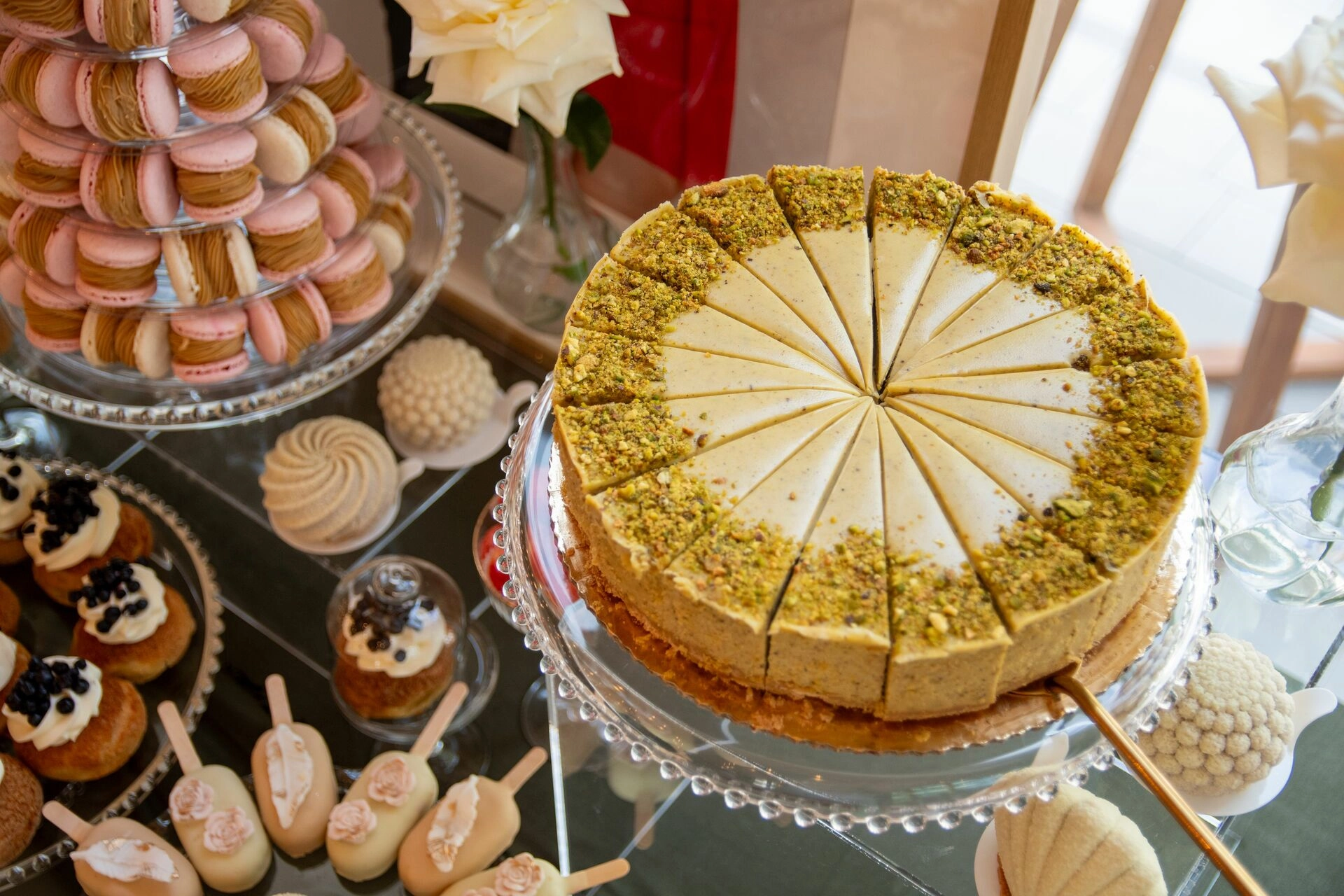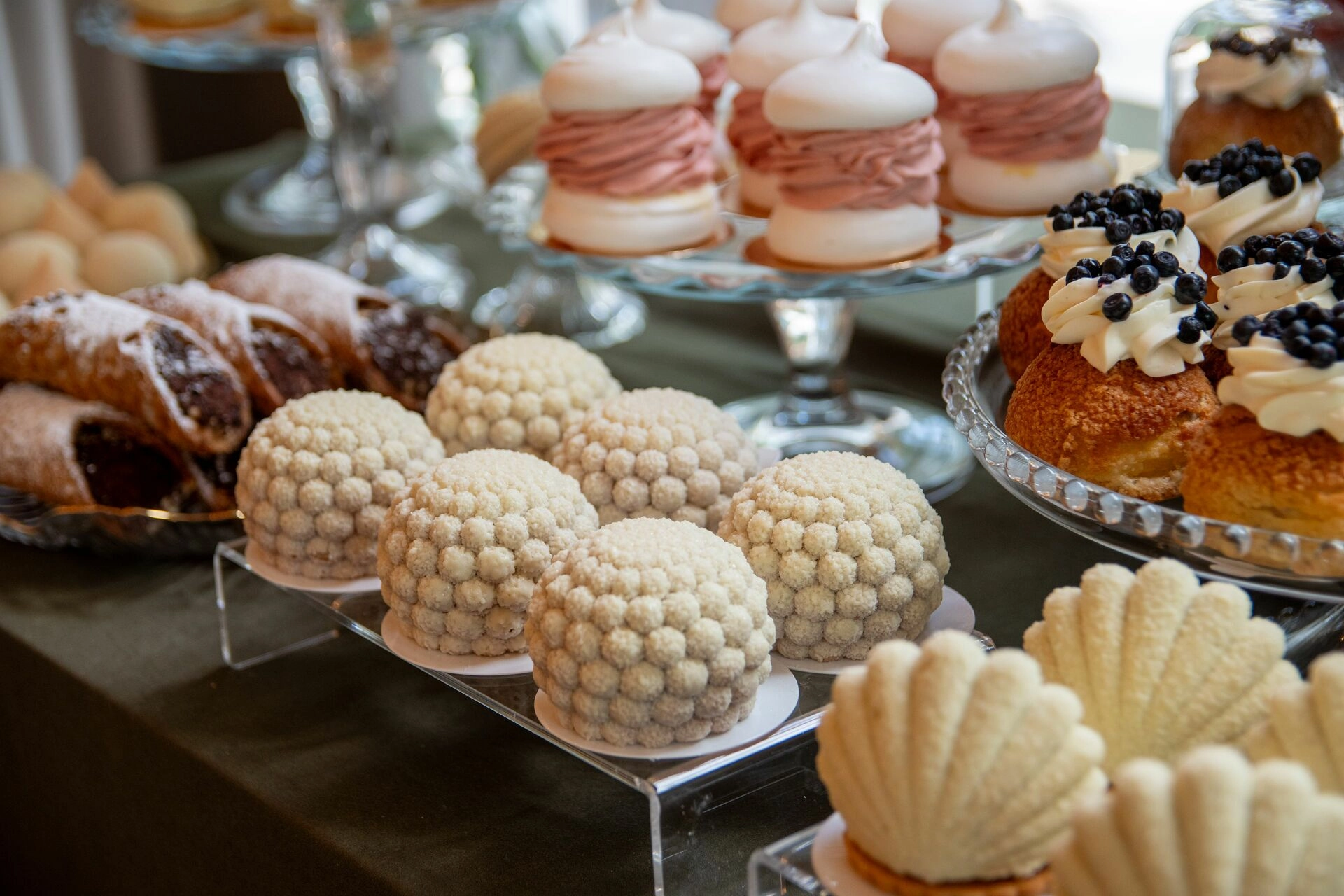 Z myślą o gościach szukających orzeźwienia przygotowaliśmy ice popsy pistacjowo-malinowe, a dla tych, którzy kochają klasykę – cake popsy cytrynowo-wiśniowe oraz cannoli z ricottą i skórką pomarańczową, prosto z sycylijskiej tradycji. Całość dopełniały trufle prosecco z truskawką, sernik pistacjowy i tarta z białą czekoladą i owocami – słodkie akcenty zamykające całą kompozycję z włoską gracją.
