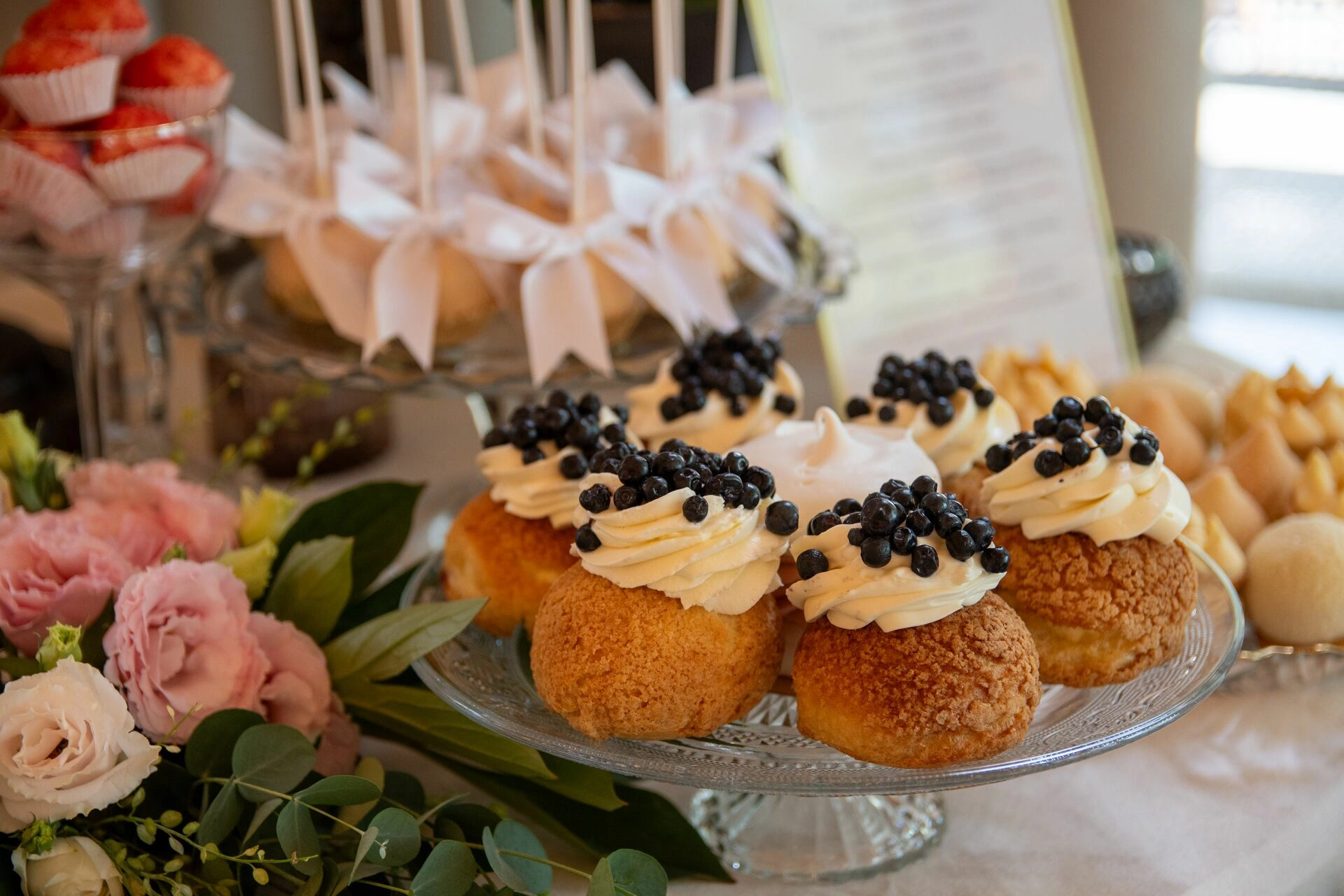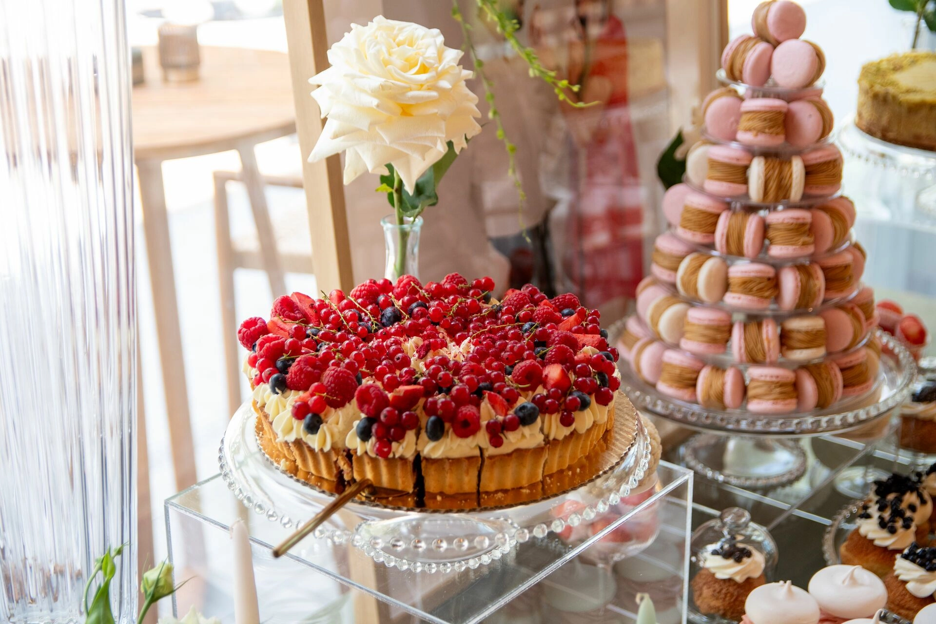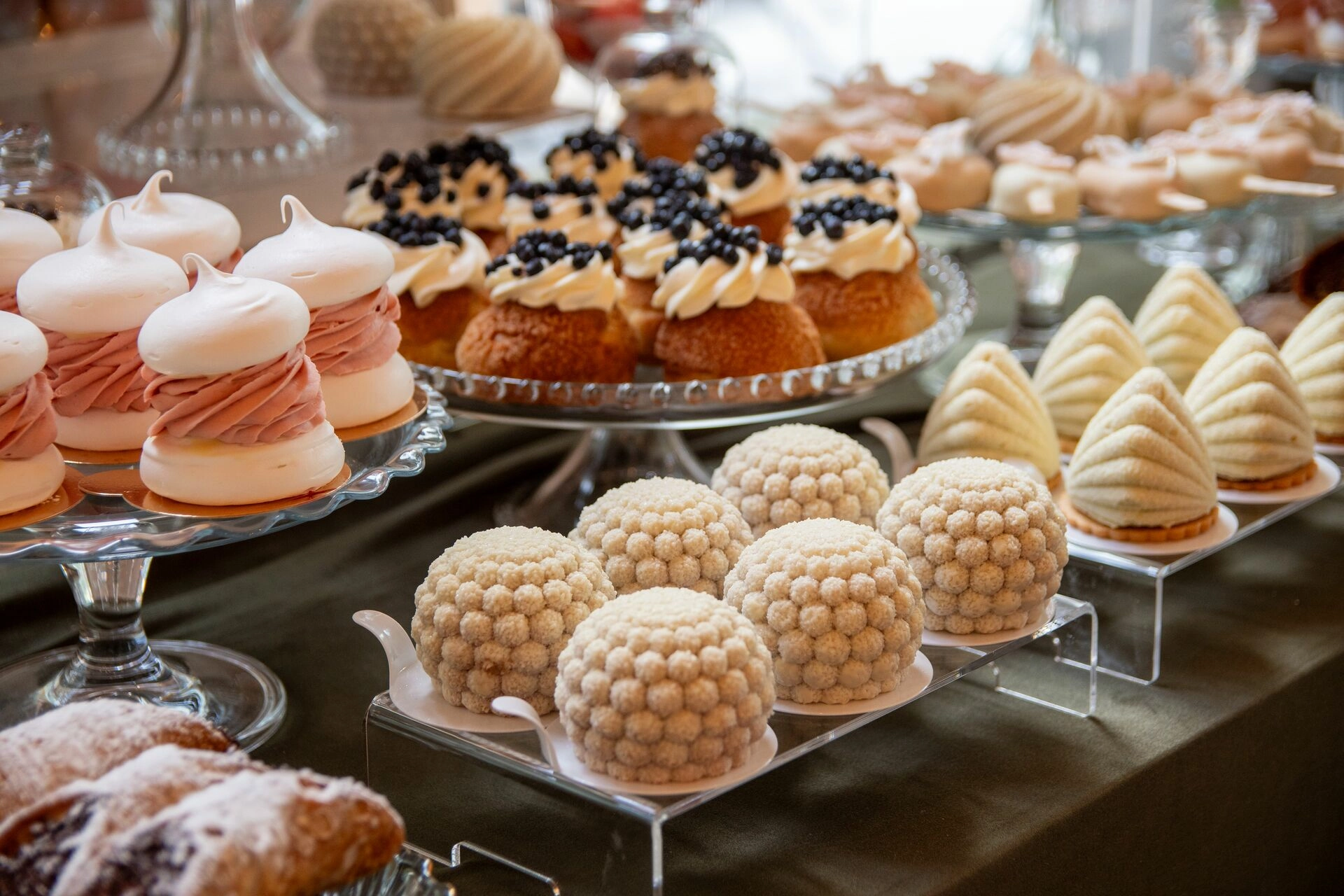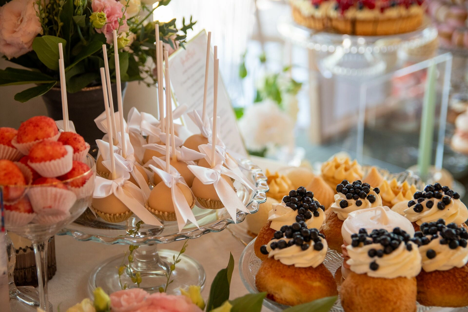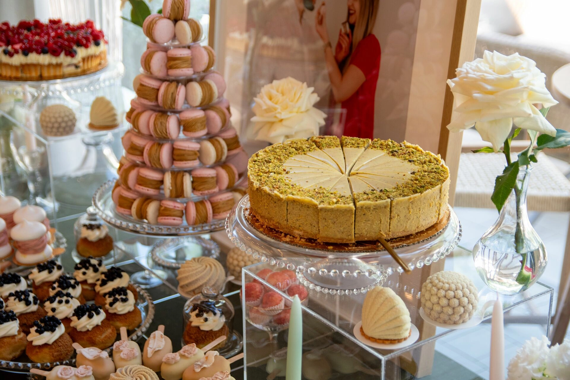 Z myślą o gościach szukających orzeźwienia przygotowaliśmy ice popsy pistacjowo-malinowe, a dla tych, którzy kochają klasykę – cake popsy cytrynowo-wiśniowe oraz cannoli z ricottą i skórką pomarańczową, prosto z sycylijskiej tradycji. Całość dopełniały trufle prosecco z truskawką, sernik pistacjowy i tarta z białą czekoladą i owocami – słodkie akcenty zamykające całą kompozycję z włoską gracją.