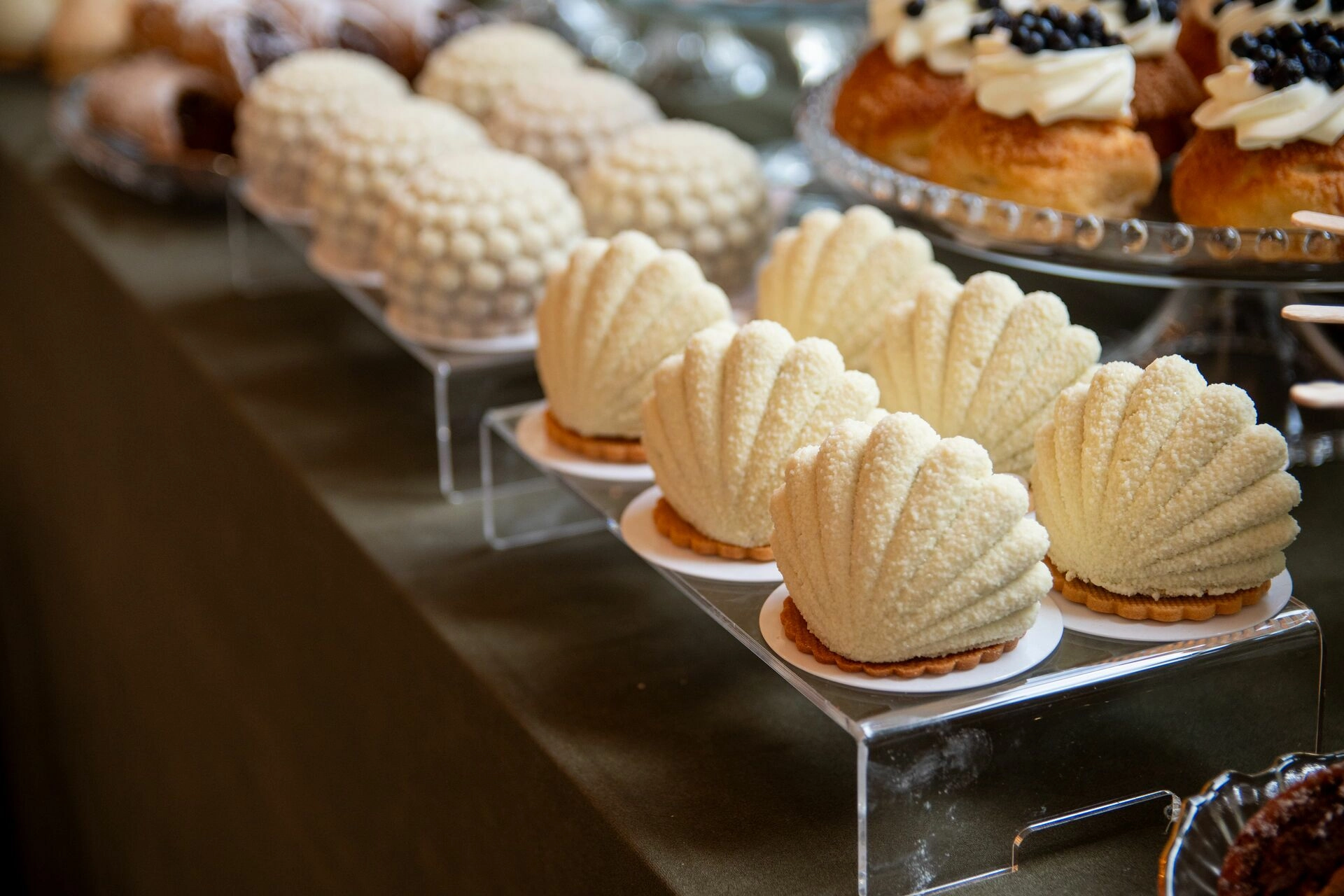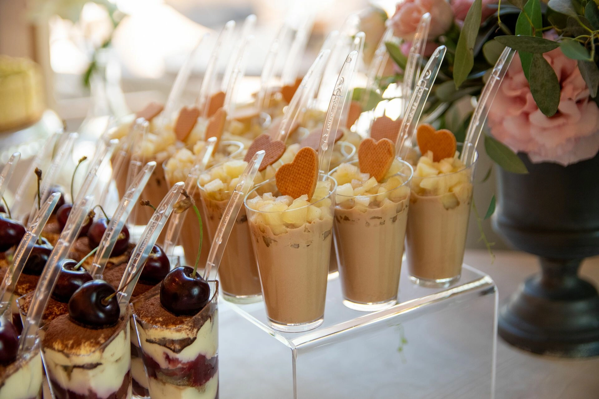 Na stole nie mogło zabraknąć ptysiów z wanilią, jagodą i lekkim jogurtem, mini bez z truskawką i rabarbarem, czy mini tartaletek z kremem z mango i marakui – lekkich jak letni wiatr nad jeziorem Como. A do tego — tiramisu z czereśnią i panna cotta Earl Grey z jabłkiem, które niczym arie puccinowskie rozbudzają zmysły i zostają w pamięci.