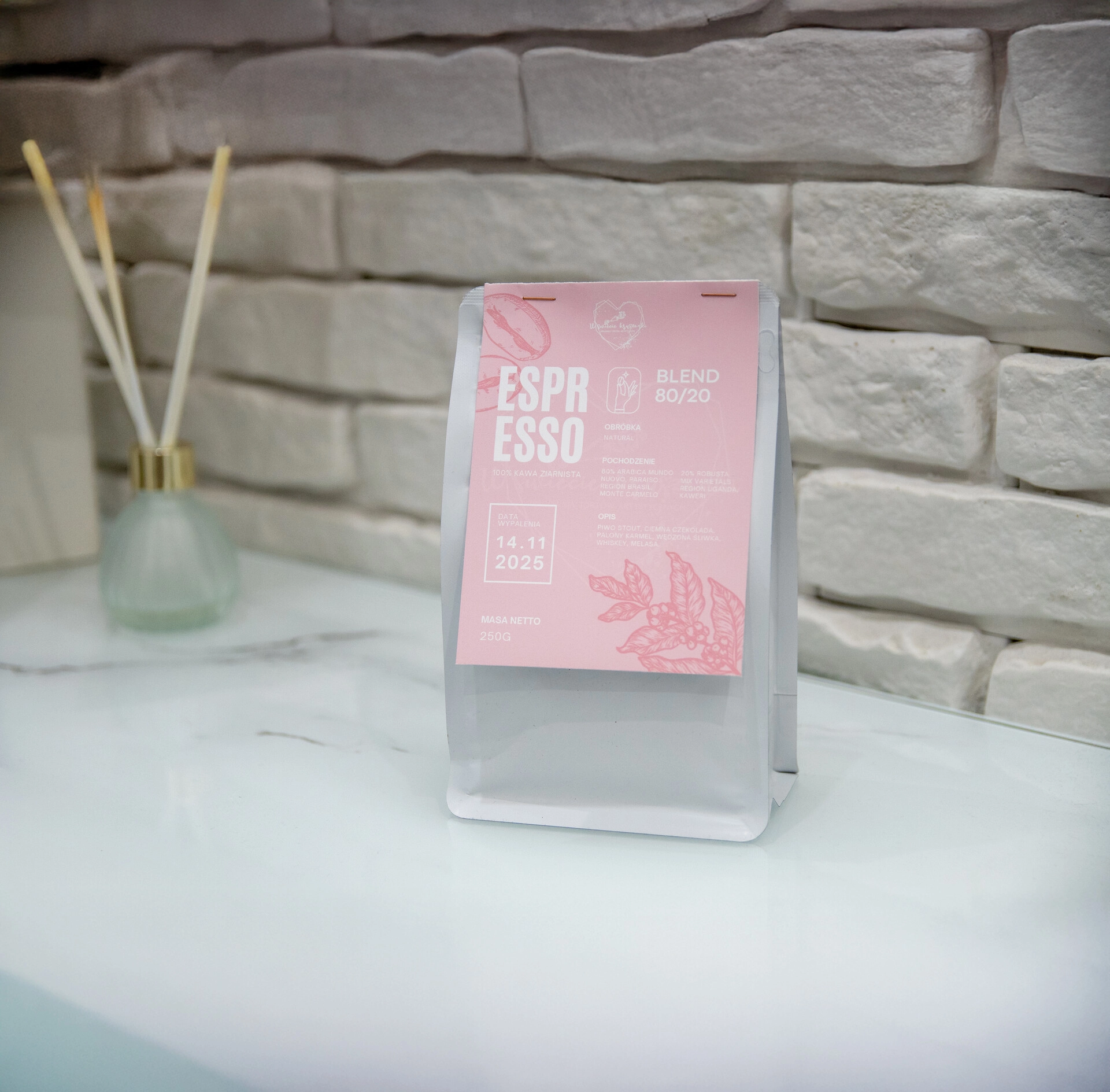 Wyrazista mieszanka 80/20 stworzona z myślą o miłośnikach intensywnego espresso, pełnego głębi i charakteru. To połączenie wysokiej jakości Arabiki i Robusty, które zapewnia kremowe body, mocniejszy akcent kofeinowy oraz długi, przyjemnie gorzko-słodki posmak.